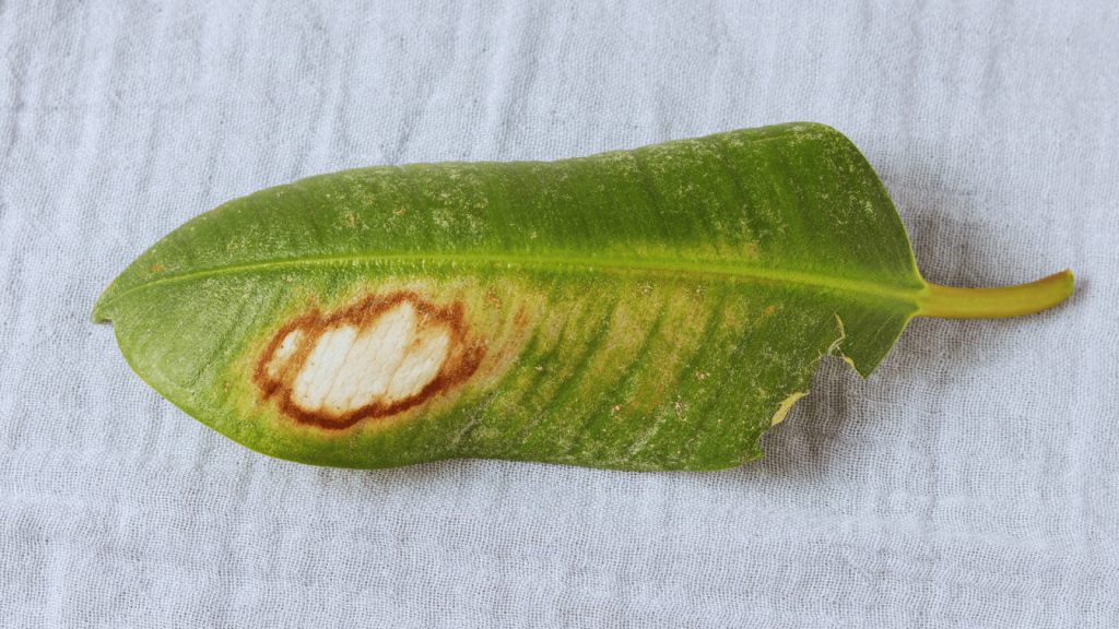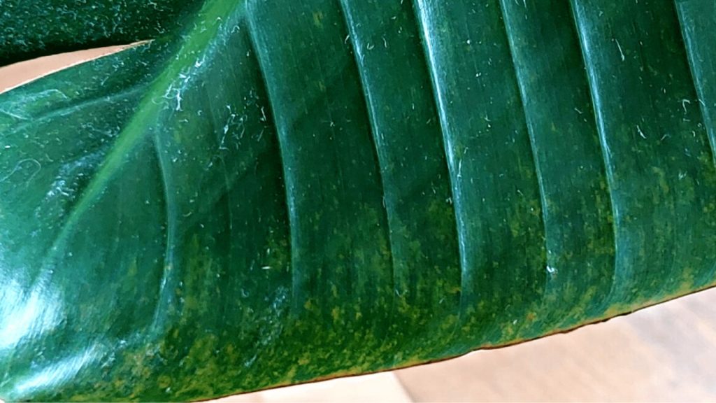 Listovi će biti “prošarani” uzduž i poprijeko. Tamo gdje nametnik isisa list, list gubi pigment. Ukoliko reagiramo na vrijeme i uklonimo nametnike, biljka će nastaviti razvijati nove, zdrave listove.