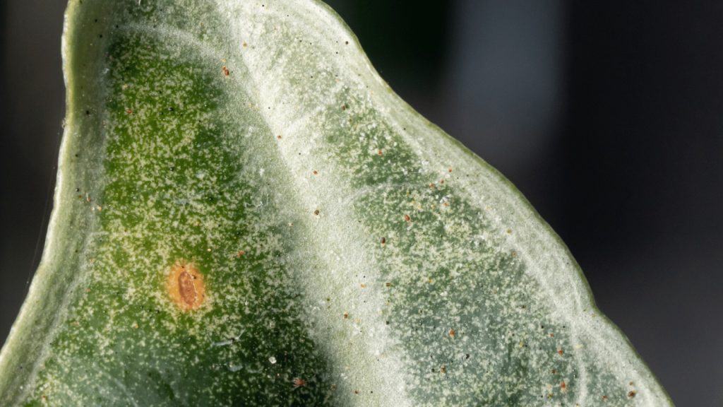 Ukoliko vaša biljka ima crvenog pauka, najčešće ćete prvo primijetiti njegova bijela jajašca (puno sitnih bijelih točkica) koja se nalaze s donje strane lista.